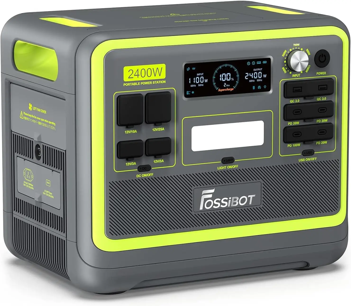 【FULL CHARGE IN 1.5 HOURS】 FOSSiBOT F2400 solar generator adopts the most advanced bidirectional inverter technique with an AC input up to 1100W (Other Brands don’t have this technology). which takes just 1.5 hours to fully charge with an AC outlet and Solar panel(500W) simultaneously, 2 hours with wall outlet, 4 hours with Solar panel(500W) 17 hours with car charging. Cycle life > 3500 times.