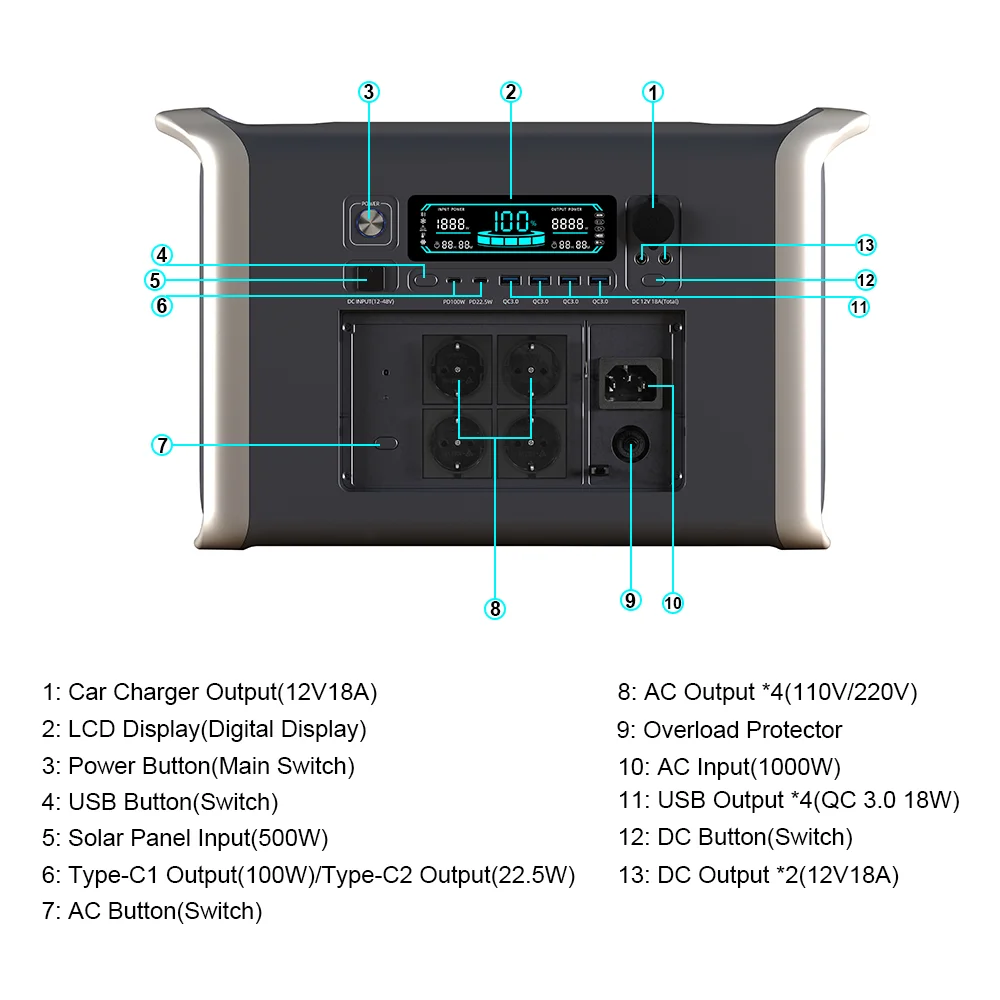 Type-C1:Output100W&Type-C2: Output 22.5W