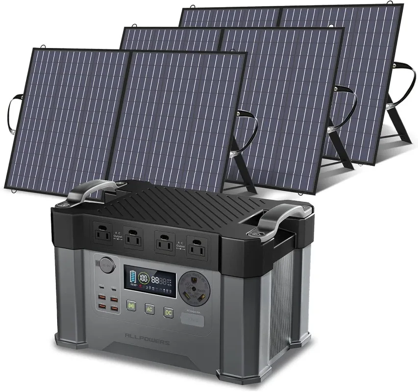 【What You Get】: 1*ALLPOWERS S2000 Pro portable power station, 3*ALLPOWERS 100W foldable solar panel, 1*AC charger, 1*Waterproof bag, solar cables, User manual.