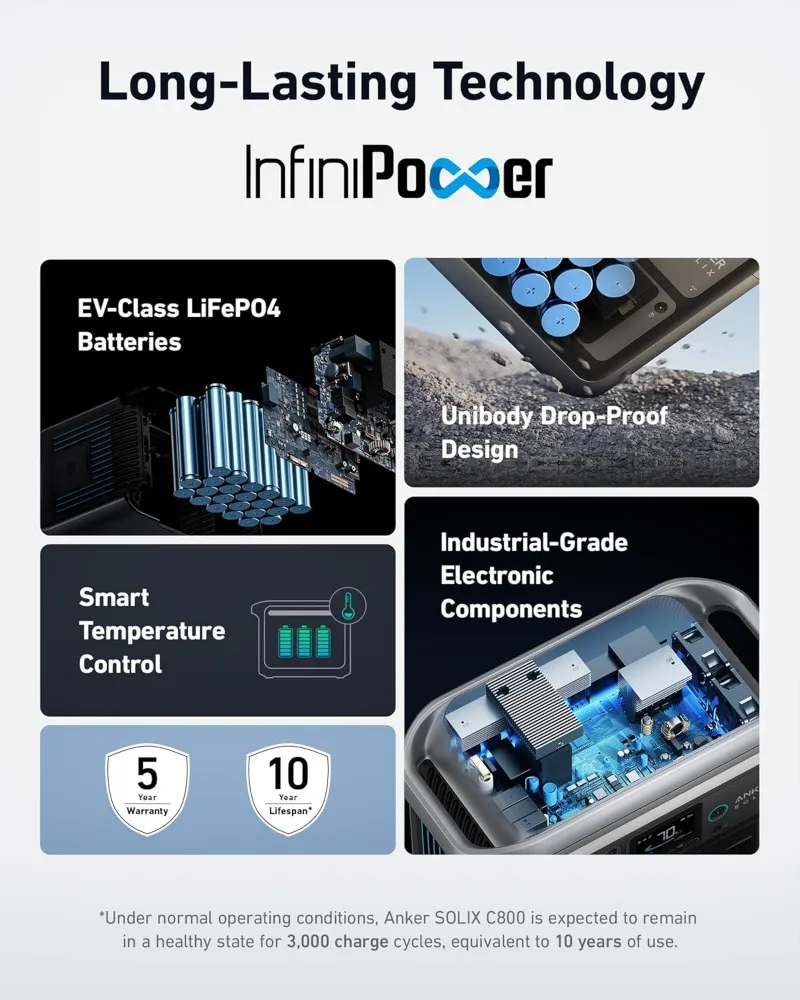 Power Every Day for 10 Years: Thanks to InfiniPower technology, power every day for a decade. These batteries last 6× longer than other brands with over 3,000 cycles.