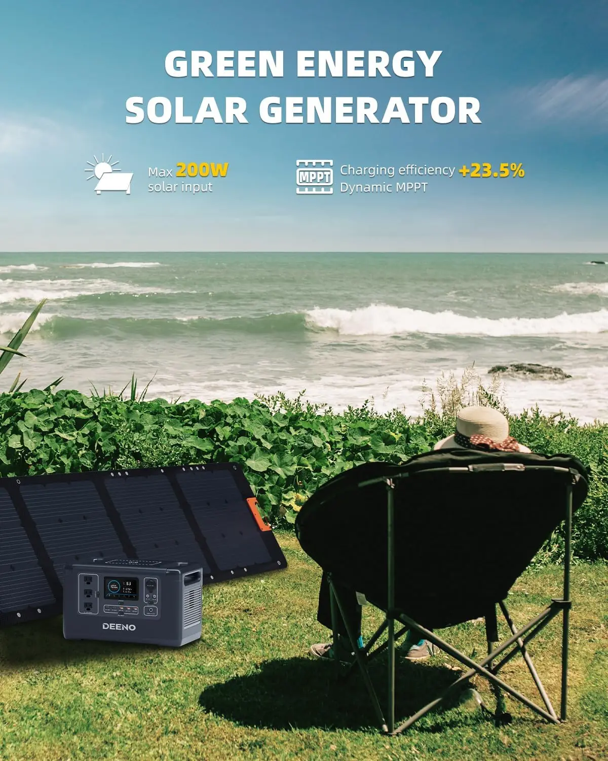 [What You Get] DEENO X1500 solar powered generator, 200W solar panel, AC adapter, solar charging cable, car charging cable, user manual and friendly customer service.