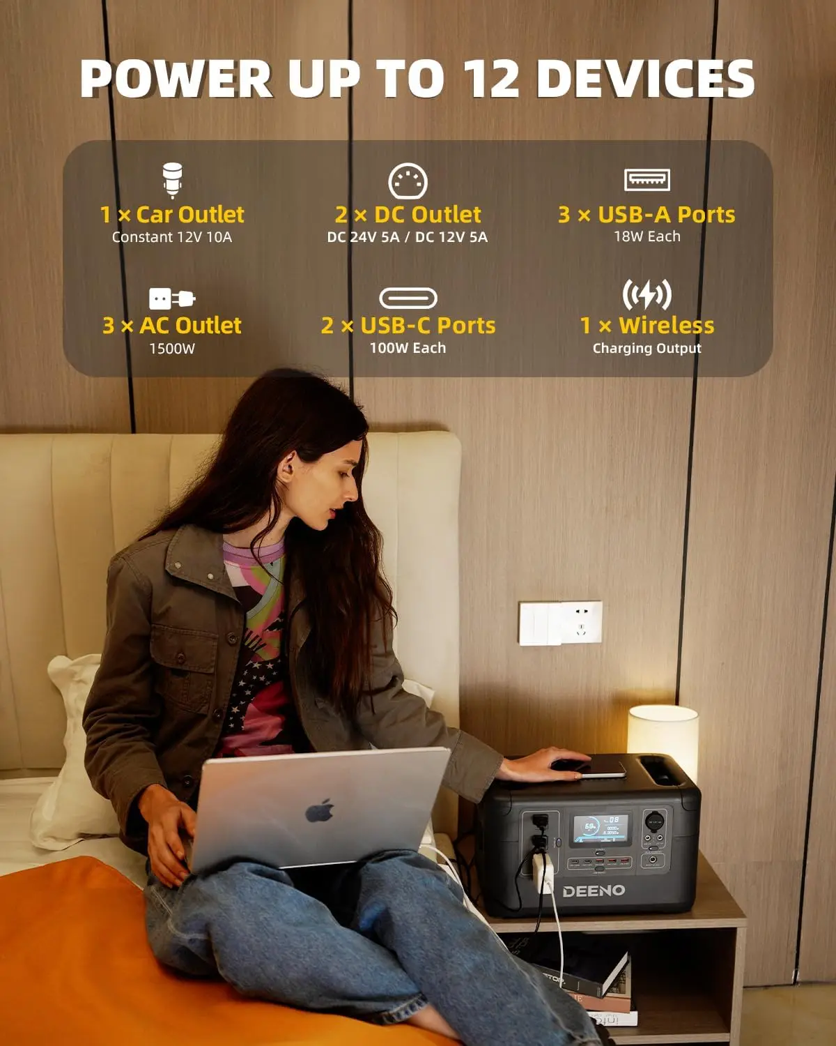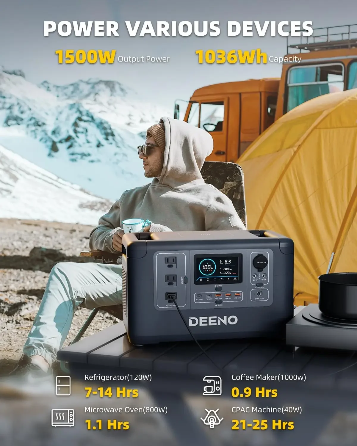 [5-Year Warranty] DEENO portable solar generator X1500 is designed to last for 10 years with everyday use. All DEENO power stations come with a 2-year guarantee for a worry-free experience.