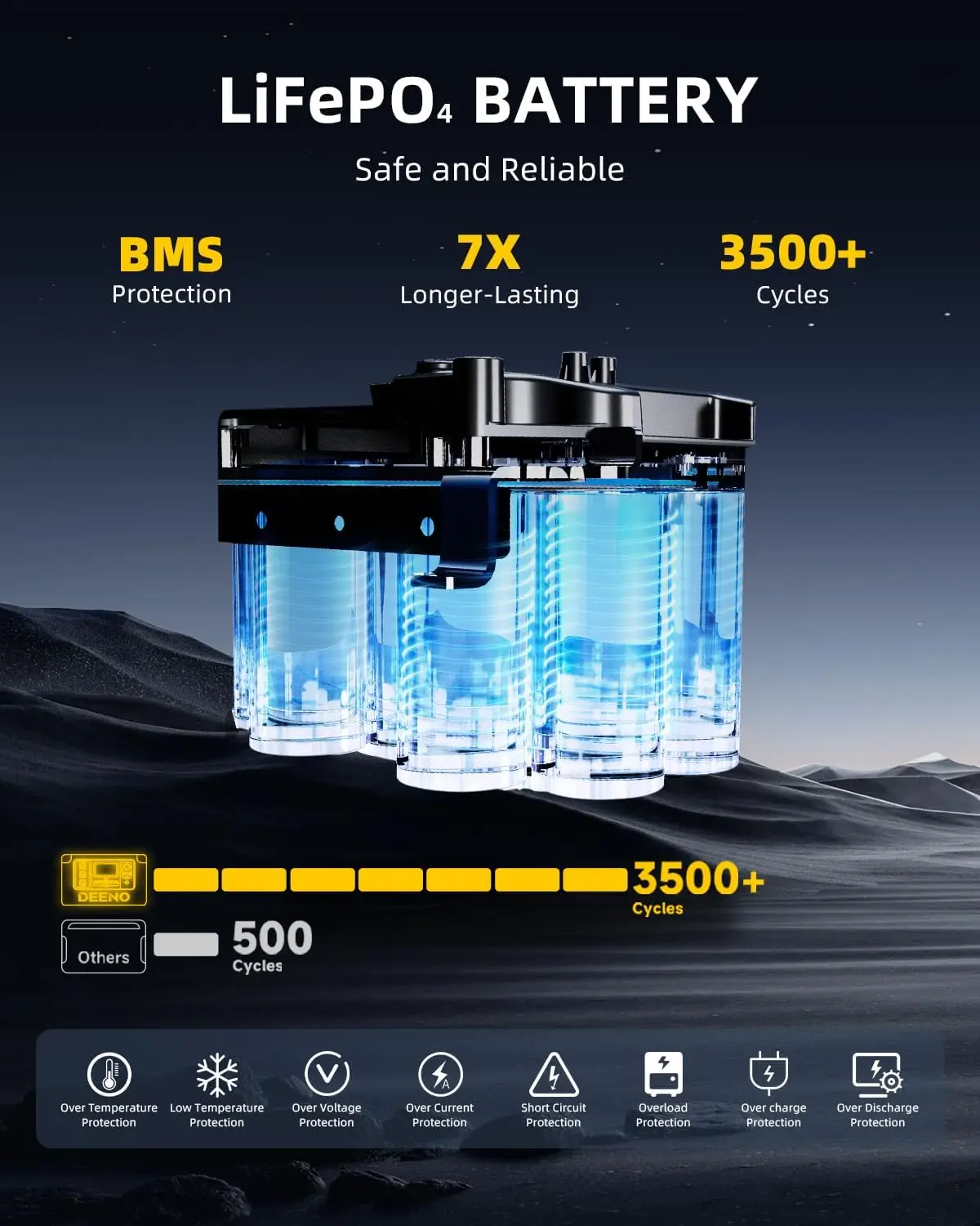 [Long-Lasting Battery] LiFePO4 Battery ensures a lifespan of more than 3500 cycles at 80% capacity, delivering up to 7 times longer than normal batteries.